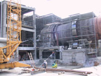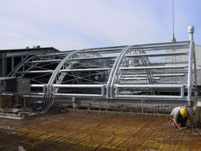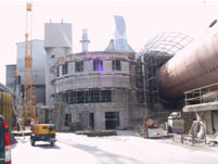 Überdachung Drehofen mit bogenförmigen Fachwerkträgern,